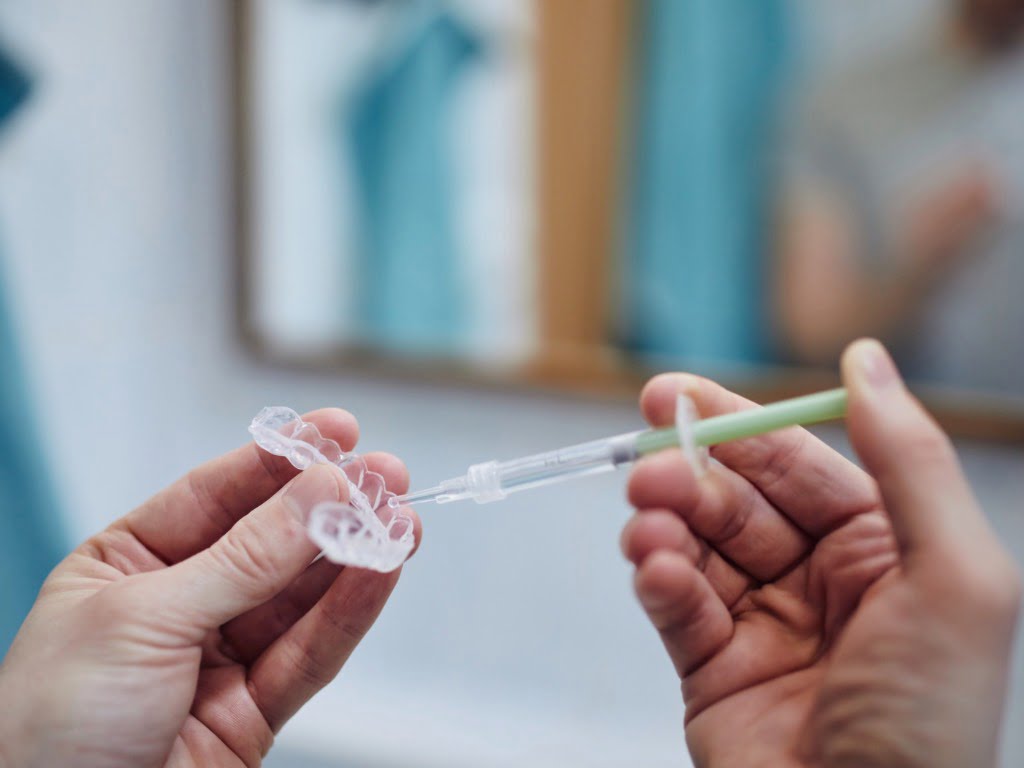 Se aplica el gel blanqueador profesional bajo supervisión, garantizando seguridad y resultados efectivos durante la sesión.